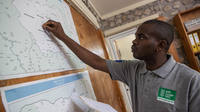 Joseph is Welthungerhilfe's Head of Project in Petit-Goâve. He coordinates a long-term urban development project that was started after the earthquake. Here he can be seen checking the construction site of a drainage channel to ensure the progress.